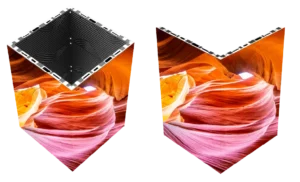 Корпус со скошенными краями позволяет создавать бесшовные светодиодные экраны под прямым углом и в виде колонн с четырех сторон. Профессиональная резка на станке с ЧПУ обеспечивает более высокую точность изготовления корпуса со скошенными краями.