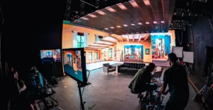 Использование светодиодного дисплея и виртуального пространства в качестве фона позволяет сократить время и затраты на подготовку реквизита, а также быстро менять фон.