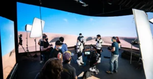 Освещение в XR-поле обеспечивается светодиодным дисплеем, что облегчает бесшовную интеграцию реальных людей в виртуальную среду и сокращает время на дальнейшую настройку освещения. Это особенно удобно для съемки реальных объектов с высокой отражательной способностью, поскольку позволяет получить информацию о реальных отражениях и освещении окружающей среды без постобработки.